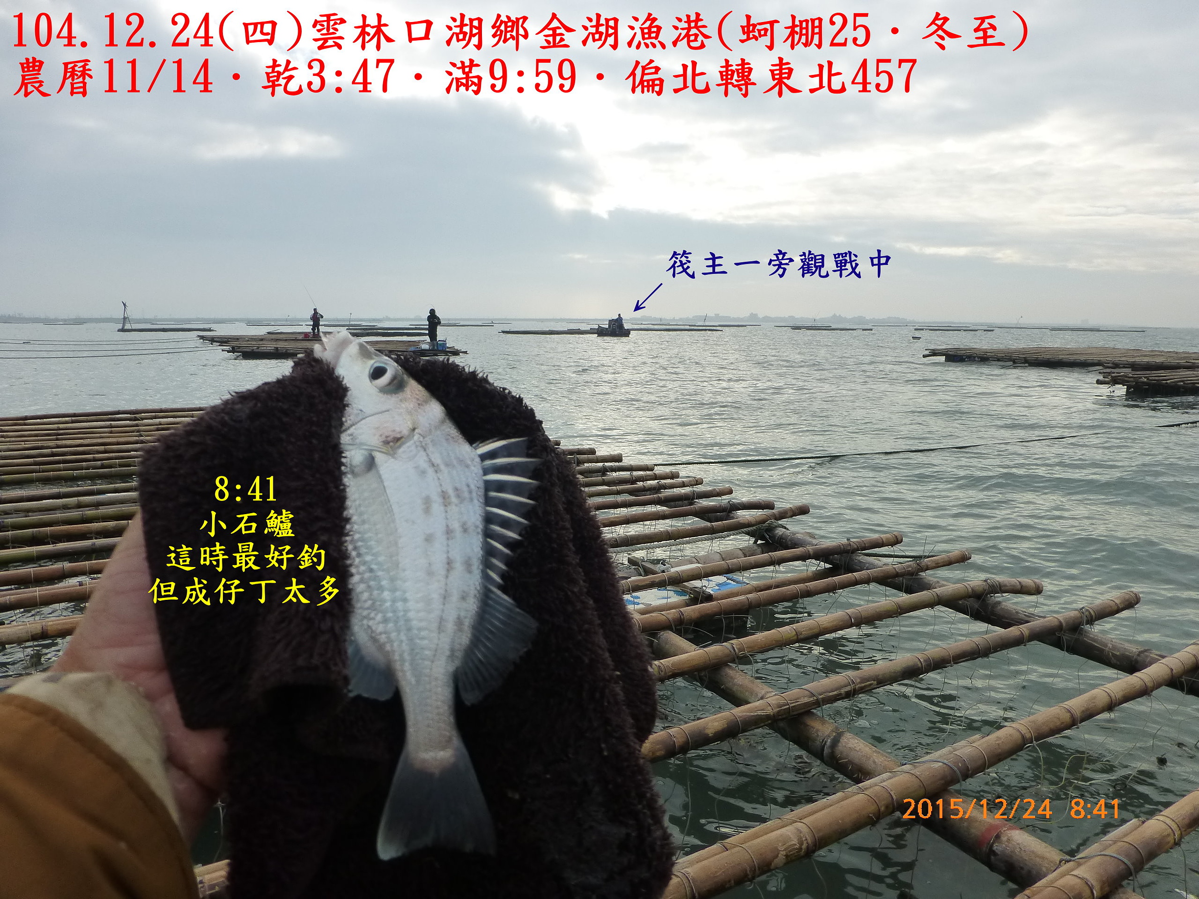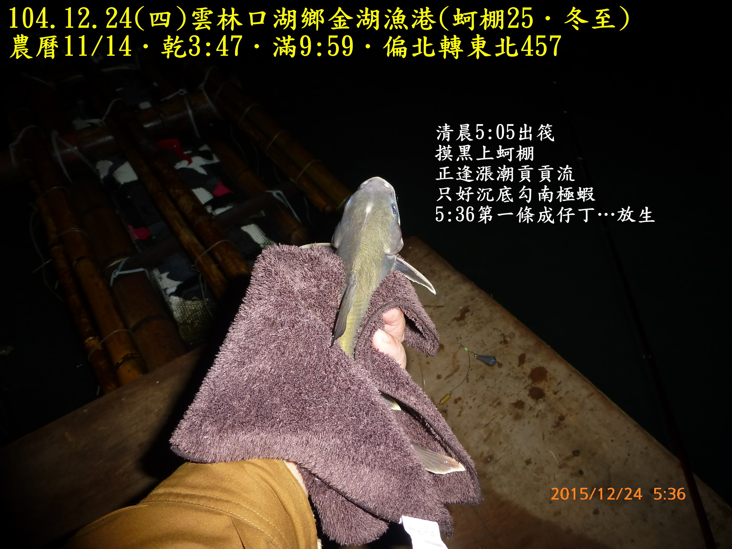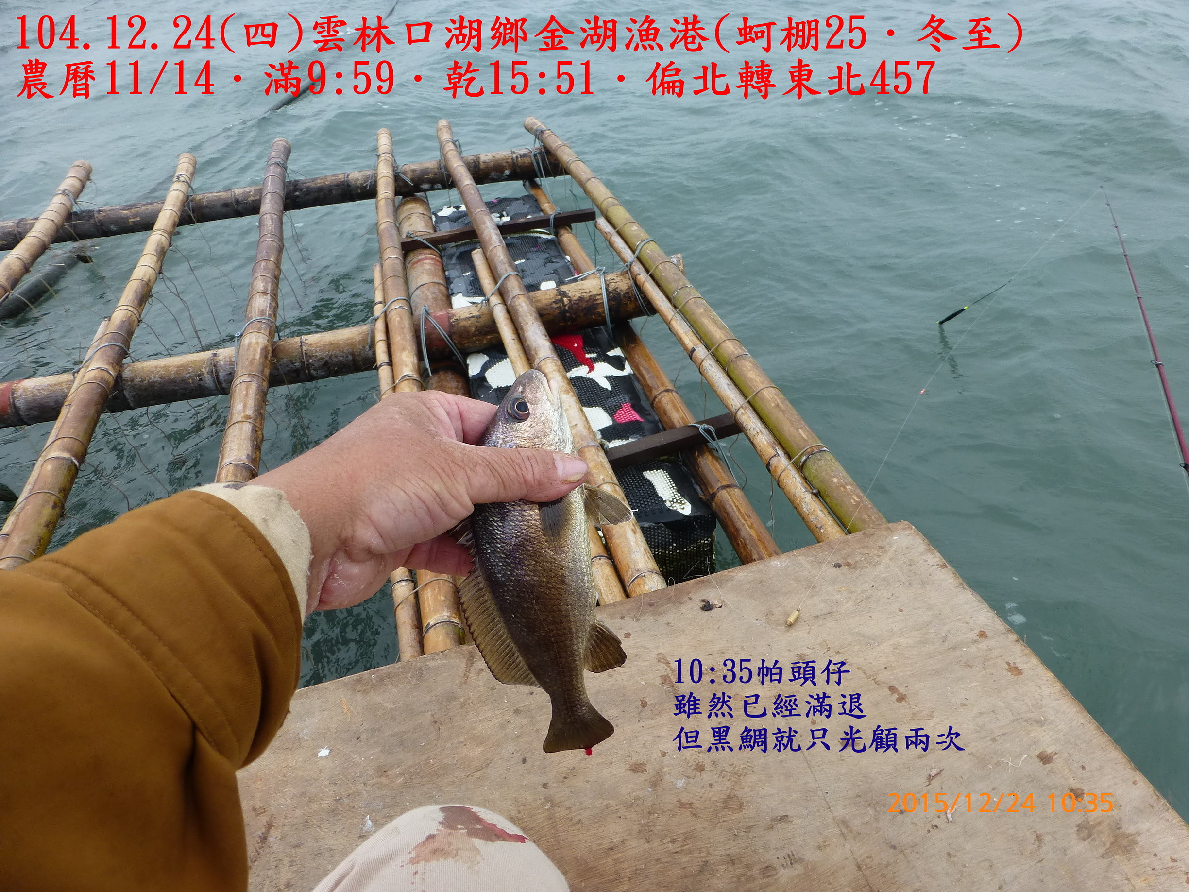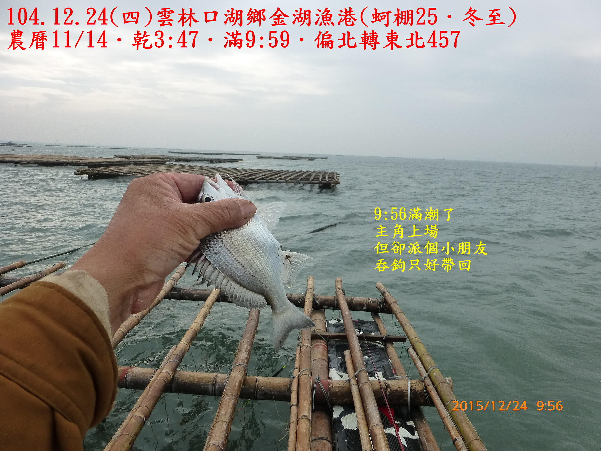 104.12.24(四)雲林口湖鄉金湖漁港(蚵棚25.冬至) 2015.12.31 未分類資料夾 相關文章980821(五)和平島106.7.2(日)基隆深澳漁港(船釣10˙夏至)104.10.14(三)基隆深澳漁港(船釣7.寒露)991220(一)宜蘭頭城竹安106.8.17(四)雲林四湖三條崙(蚵棚35.立秋)103.11.2(日)雲林臺西五條港(蚵棚15.霜降)102.9.7(六)馬祖北竿第一天認識環境990226(五)箔子寮蚵棚釣102.8.1深澳漁港船釣(農曆6/25大暑)