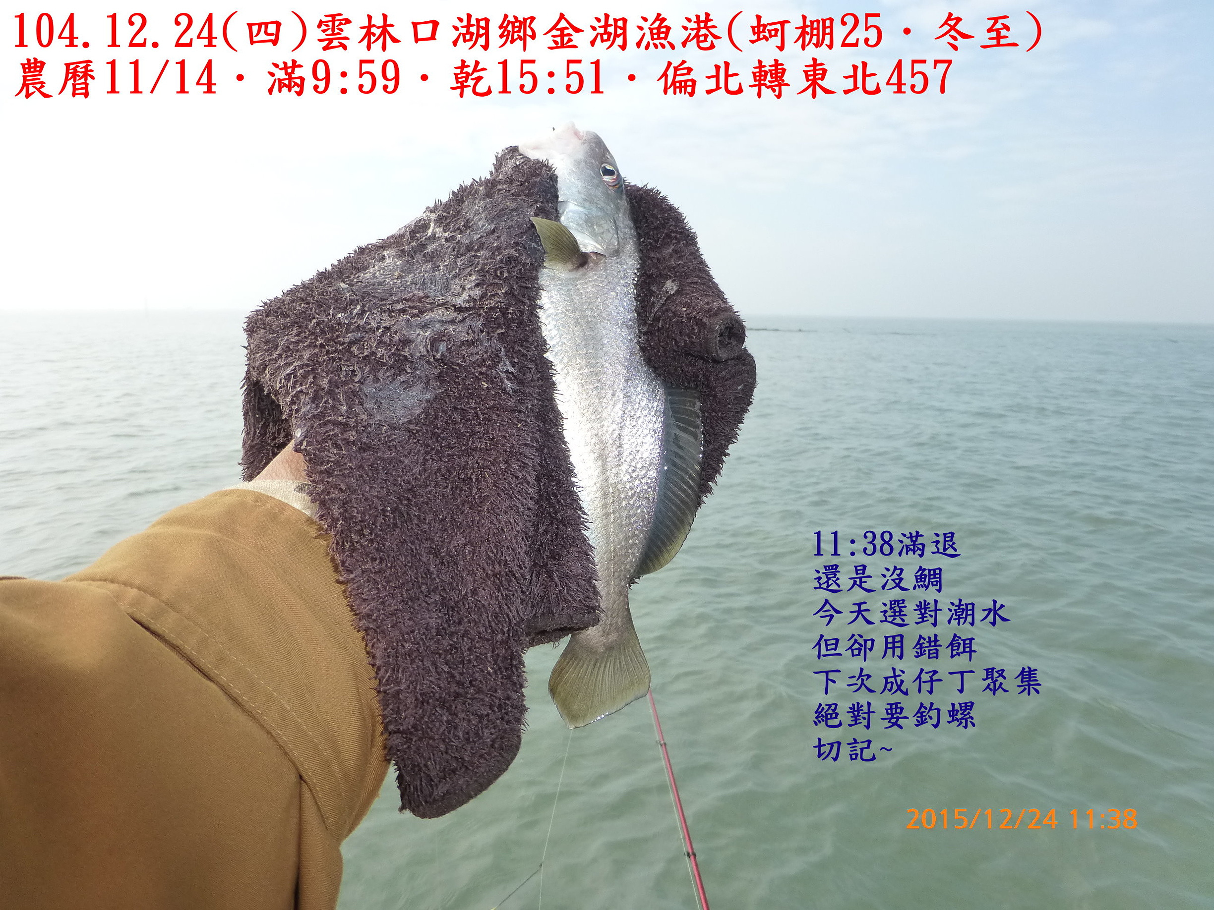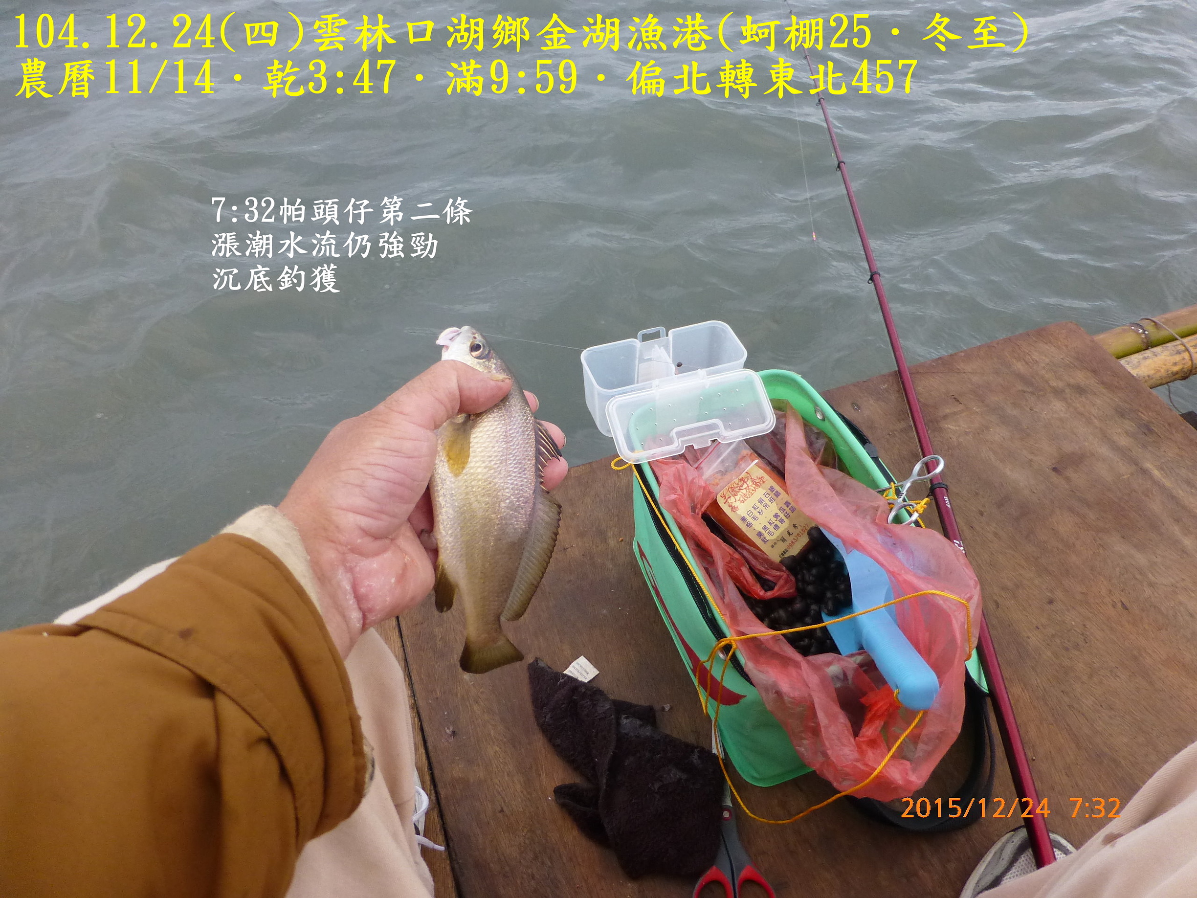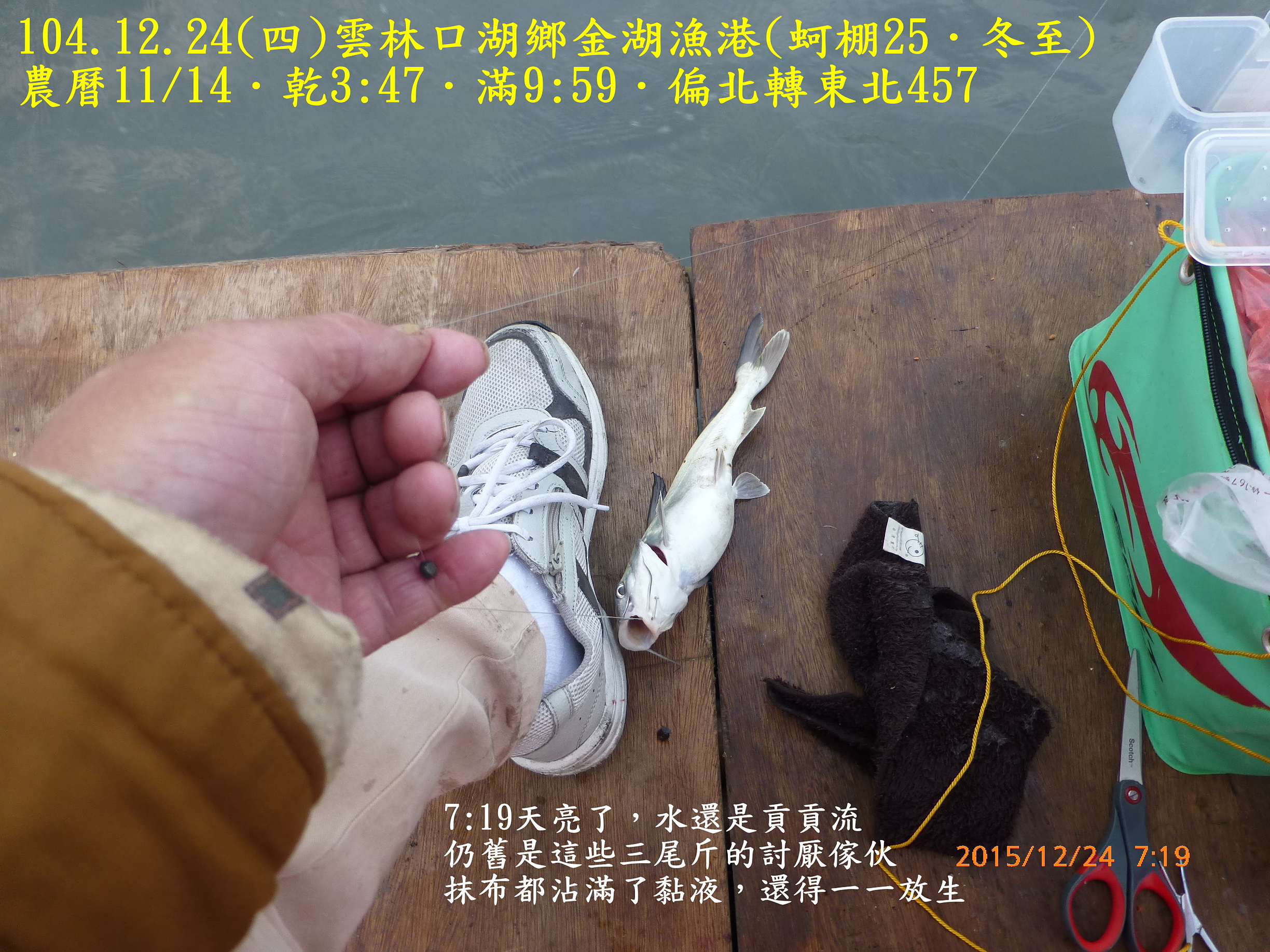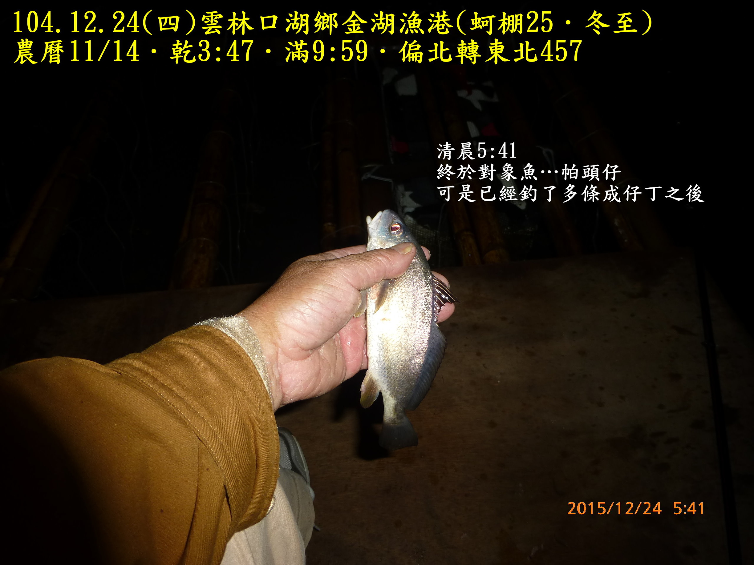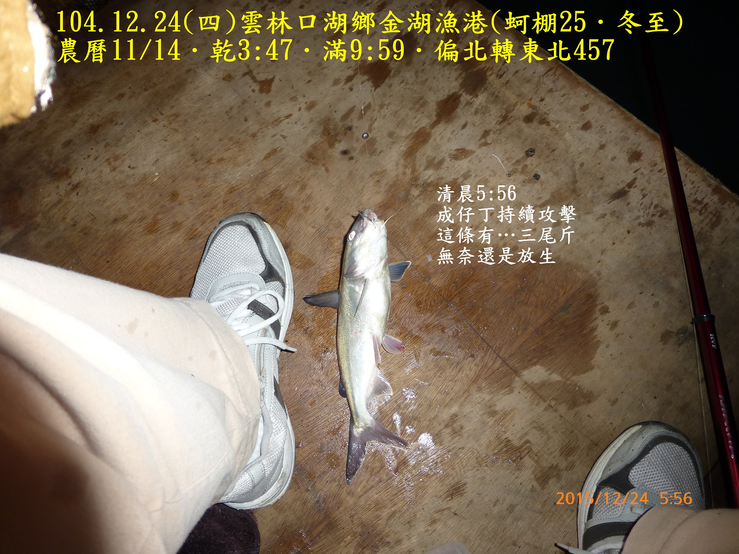 104.12.24(四)雲林口湖鄉金湖漁港(蚵棚25.冬至) 2015.12.31 未分類資料夾 相關文章980821(五)和平島106.7.2(日)基隆深澳漁港(船釣10˙夏至)104.10.14(三)基隆深澳漁港(船釣7.寒露)991220(一)宜蘭頭城竹安106.8.17(四)雲林四湖三條崙(蚵棚35.立秋)103.11.2(日)雲林臺西五條港(蚵棚15.霜降)102.9.7(六)馬祖北竿第一天認識環境990226(五)箔子寮蚵棚釣102.8.1深澳漁港船釣(農曆6/25大暑)